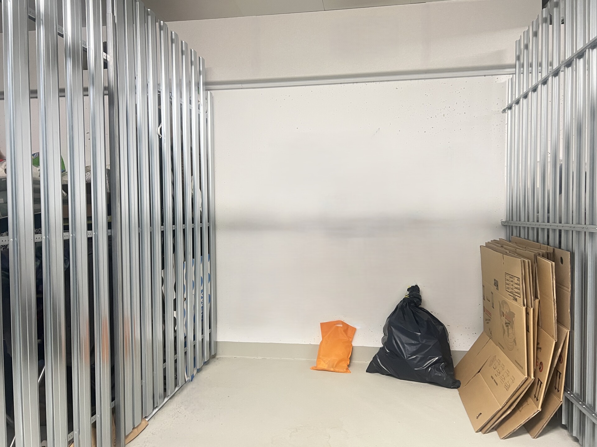 Das Tageslichtbadezimmer ist mit weißen Wandfliesen gestaltet und verfügt über eine großzügige bodentiefe Dusche. Der Boden ist mit dem gleichen Vinylboden versehen wie der Wohn und Schlafbereich, was der Wohnung ein harmonisches und einheitliches Gesamtbild verleiht.
